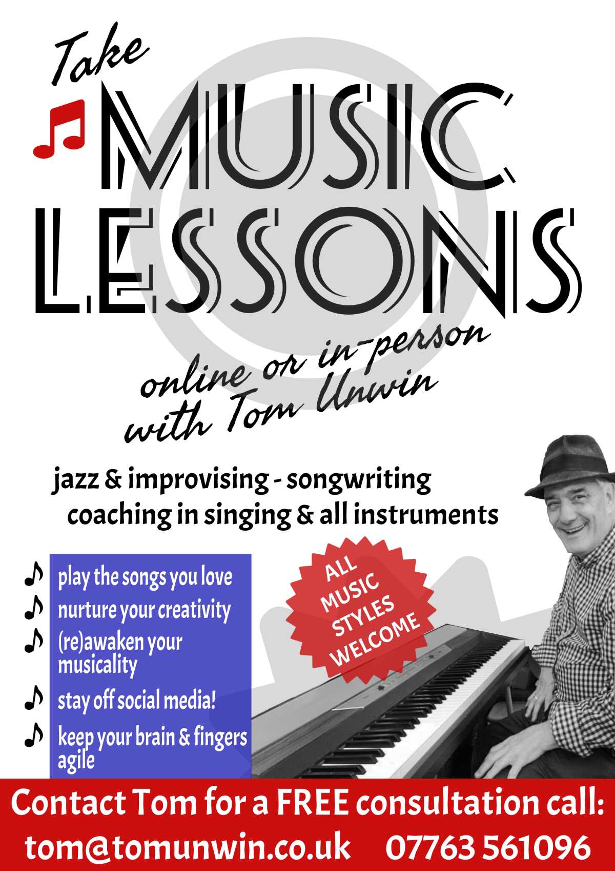 “Tom is a generous, encouraging and exciting musician who has at his heart the fun in playing around with whatever your instrument choice is. Once you’ve experienced Tom you don’t forget what you’ve learnt and your experience keeps giving” – Andrew, trumpet